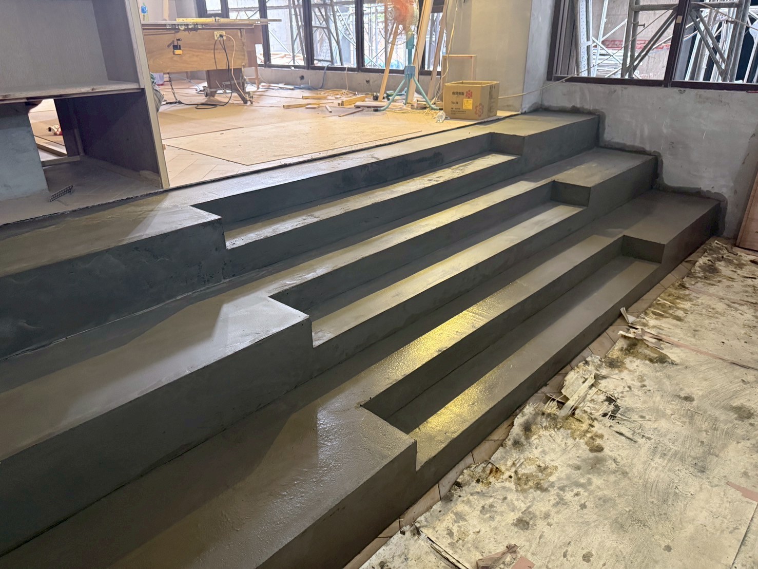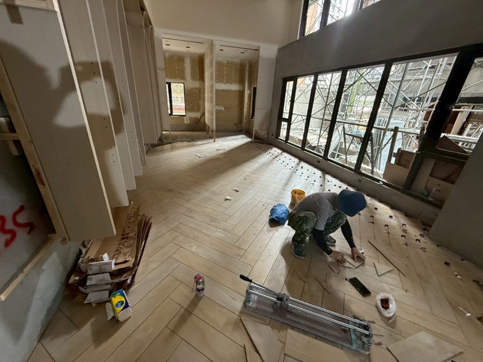 02 2025 1F石材施作 2025.02.05 1F店鋪地磚施作 2025.02.05 9F梯廳泥作粗底 2025.02.05 5F梯廳壁磚施作 2025.02.05 8F無障礙樓梯磚施作 2025.02.05 基地空拍圖 2025.02.05