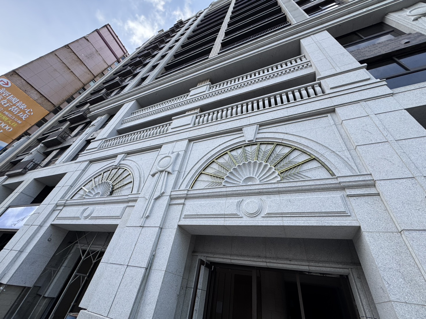 04 2025 基地空拍圖 2025.04.05 1F公設鋁窗安裝 2025.04.05 2F 石材施作 2025.04.05 3號機電梯安裝 2025.04.05 9F浴室壁磚施作 2025.04.05 9F地坪打底 2025.04.05