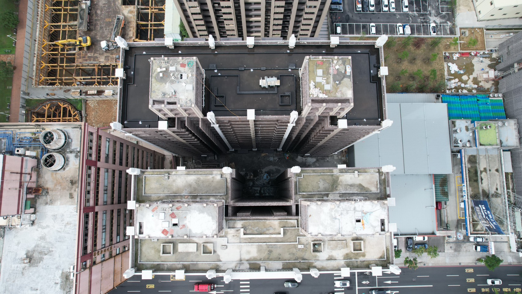 12 2024 2F浴室壁磚施作 2024.12.05 4F浴廁防水施作 2024.12.05 7F輕隔間單面模施作 2024.12.05 4F輕隔間批土 2024.12.05 15F頂版鋼筋綁紮 2024.12.05 基地空拍圖 2024.12.05